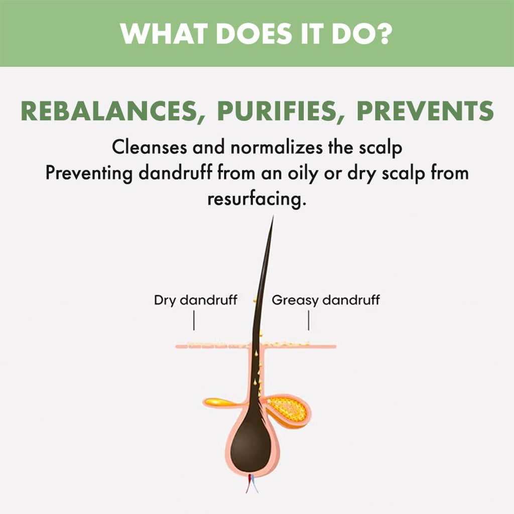 - Scalp becomes intensely purified and free of dry and greasy dandruff