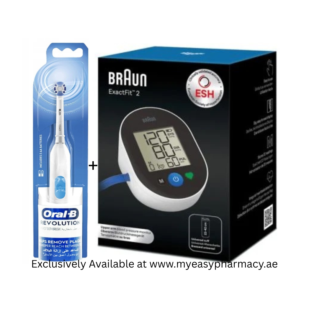 Braun ExactFit 2 Upper Arm Blood Pressure Monitor BUA4050 And Oral-B Revolution Toothbrush Combo Pack