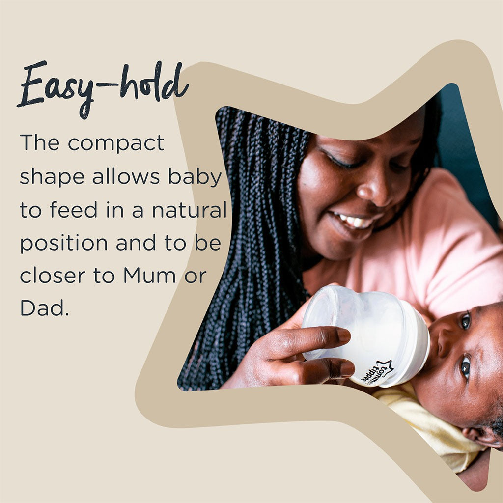 Tommee Tippee Closer To Nature Feeding Bottle Boy is designed to mimic the natural flex and feel of a mum's breast. They’re shaped like a breast and feel like a breast (because babies prefer it that way) and feature an anti-colic valve in the teat. This reduces excessive air flow, so your little one ingests more milk and less air as they feed, preventing symptoms of colic. It is made from soft-feel silicone that allows the warmth of the milk to be felt by baby and the softness that feels like a breast so your baby may comforted when you are not an option. This bottle feels just like mom and provides baby with the familiar comfort and warmth of mom's breast. The anti-colic valve in the bottle nipple reduces excessive air flow, so little ones ingest more milk and less air, preventing symptoms of colic. The anti-static silicone coating keeps the bottle clean and hygienic by repelling dust particles and won't retain any stains and odors left behind by breast milk or formula. This award-winning brand was launched in the UK over 50 years ago and was founded with one simple goal - to make everyday life just a little easier for parents around the world. World-class research and development, baby-led products are what makes Mayborn Group a world-leader in products for parents. Tommee Tippee is here to enable parents to embrace and enjoy the roller coaster ride of bringing up a baby. All Tommee Tippee products are BPA, BPS, PVC, Phthalate and Nitrosamine free.
