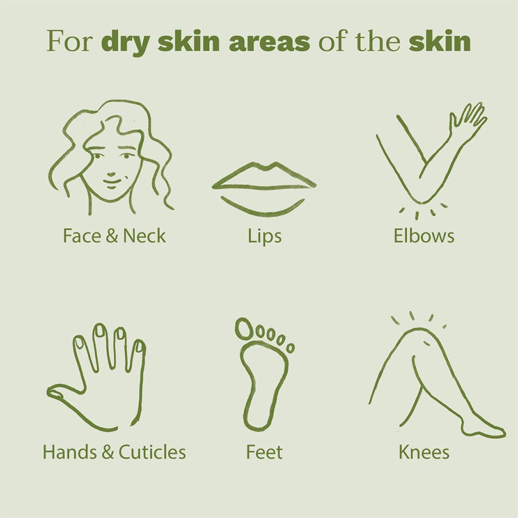 - Helps hydrate the areas prone to dryness, such as the face and body