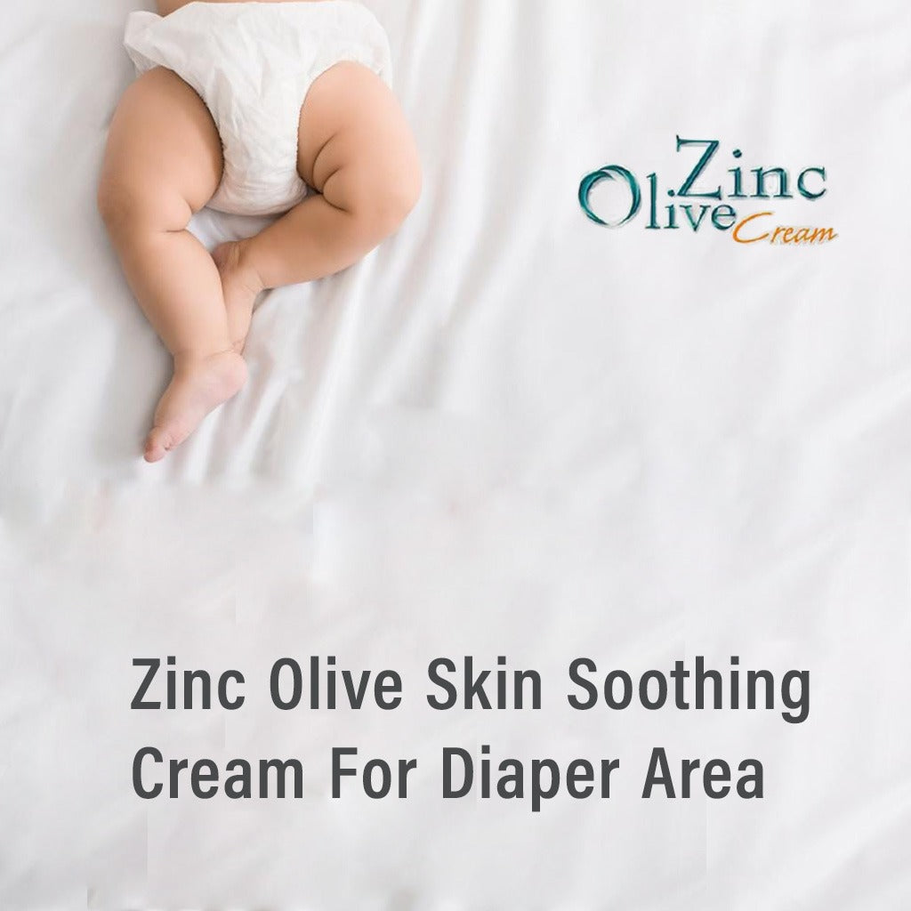 Zinc Olive Skin Soothing Cream For Diaper Area contains zinc oxide as a soothing agent and has mild astringent and antiseptic action. Zinc oxide has the ability to reflect ultraviolet radiation, and is commonly used to prevent or to treat diaper rash by forming a protective barrier between the skin and the diaper. Olive and castor oils when applied to the skin can form a very thin layer which acts a barrier protection to the skin from water soluble irritants. These oils can also ease symptoms of skin conditions like eczema & cradle cap. Diaper rash is a common form of irritated skin (dermatitis) that looks like patches of inflamed skin on your baby's bottom. It is often related to wet or infrequently changed diapers, skin sensitivity, and chafing. It usually affects babies, though anyone who wears a diaper regularly can develop the condition. This Zinc Olive Skin Soothing Cream For Diaper Area is a magical remedy for diaper rash.