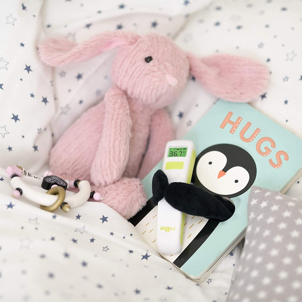 Agu Baby Giraffe Non-Contact Thermometer For Children Green/White measures temperature without touching the child. It takes only 1 second to measure the reading with an accuracy of 0.2 degrees Celsius. It signals when the measurement taking has finished and it rings an alarm in case of fever. This can also measure surface and liquid temperature. AGU means more comfort for the child, an easier life for the parents, and new opportunities to improve and enrich everyday life. Ergonomic, practical, intuitive to use and easy-to-care for product with application solutions simplify daily procedures and assures full enjoyment at every level.