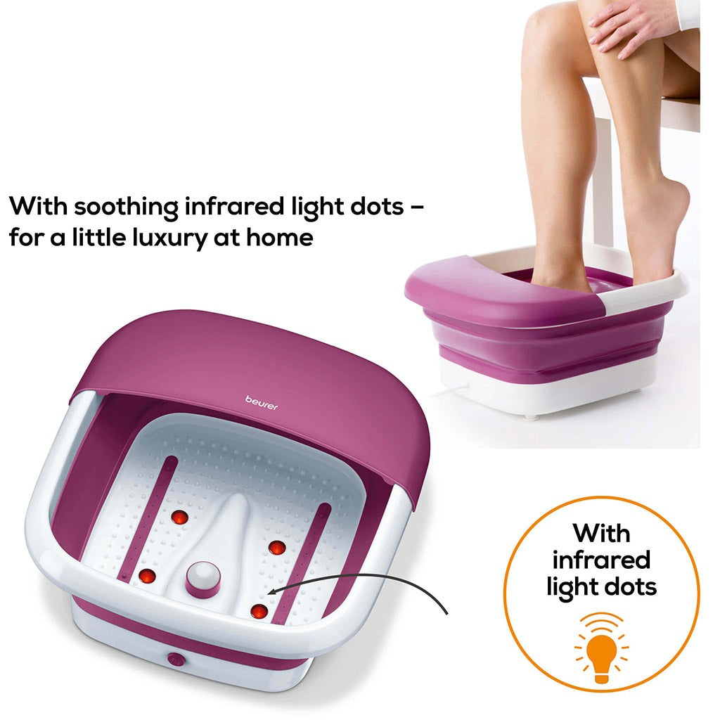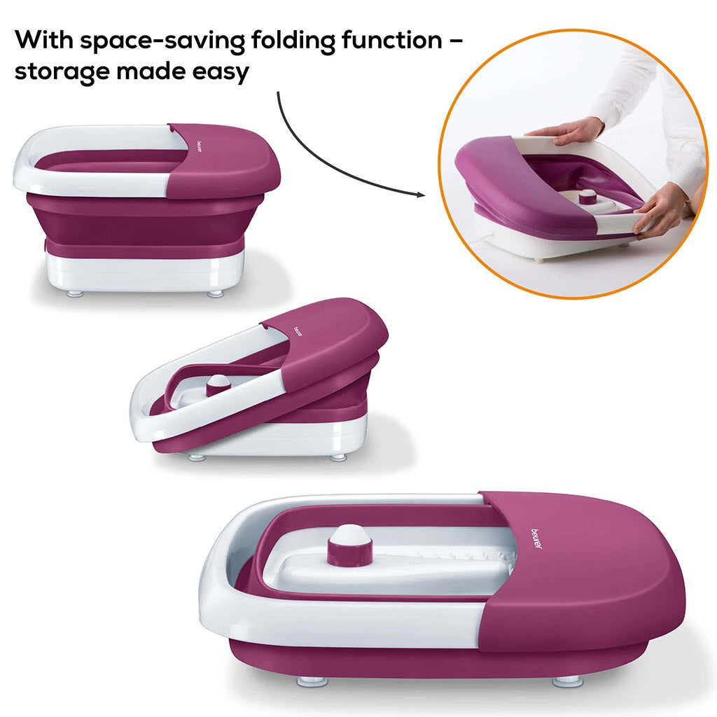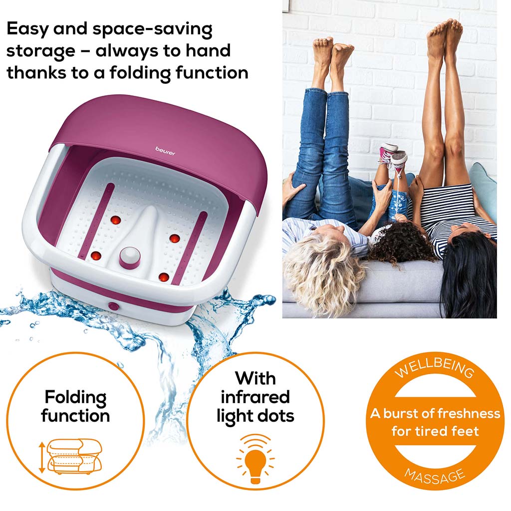 Beurer FB30 Foot Bath Massager gives a relaxing foot bath and it can be easily folded and stored away after use. The three functions of vibration massage, bubble massage and water tempering helps keep the feet happy and even in small flats.