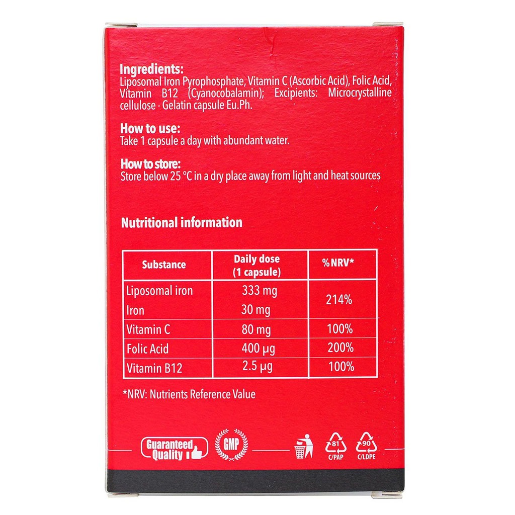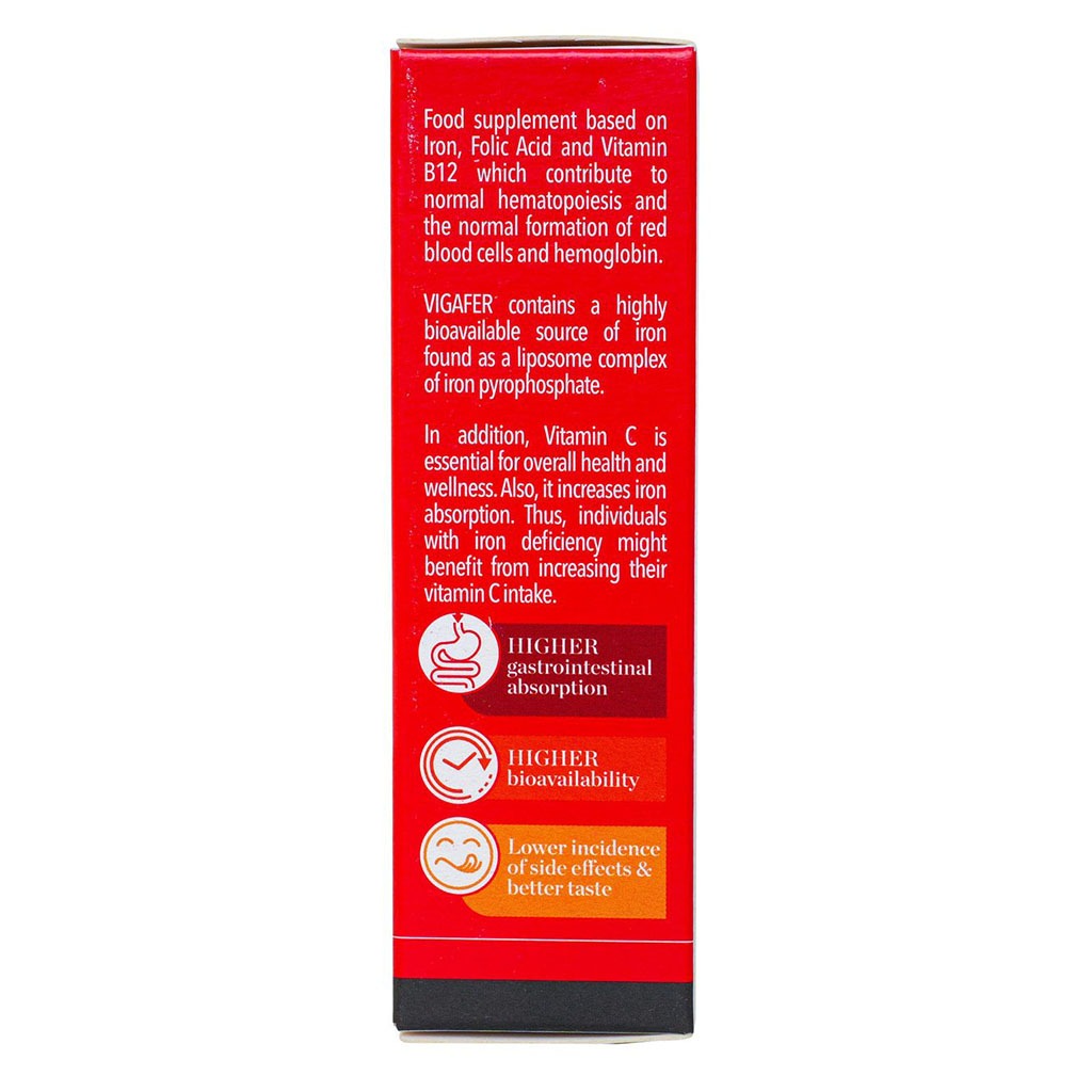 Vigafer Capsules are a food supplement designed to support normal hematopoiesis and the formation of red blood cells and hemoglobin. The key components include liposomal iron, folic acid, vitamin B12, and vitamin C. Iron is crucial for the formation of hemoglobin and red blood cells. The use of a liposomal complex may enhance the bioavailability of iron, potentially making it easier for the body to absorb. Folic acid is a B-vitamin that plays a role in DNA synthesis and is important for normal cell division, including the formation of red blood cells. Vitamin B12 is essential for the normal functioning of the nervous system and the production of red blood cells. Vitamin C is known for its antioxidant properties and is important for overall health. In the context of Vigafer Capsules, it is mentioned that vitamin C increases iron absorption. This is accurate; vitamin C enhances the absorption of non-heme iron (the type of iron found in plant-based foods and supplements) in the intestines. Overall, the combination of these components in Vigafer Capsules suggests a comprehensive approach to addressing iron deficiency and supporting hematopoiesis. Additionally, maintaining a balanced diet is key for overall health and wellness.