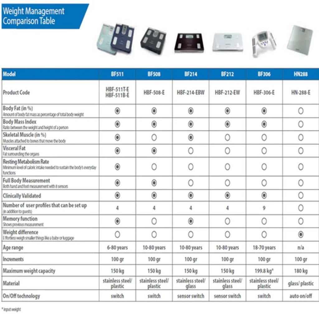 Omron BF212 Body Composition Monitor provides clinically validated measurements of your body fat. In addition, it shows your body weight and BMI, helping you to track your body composition over time.