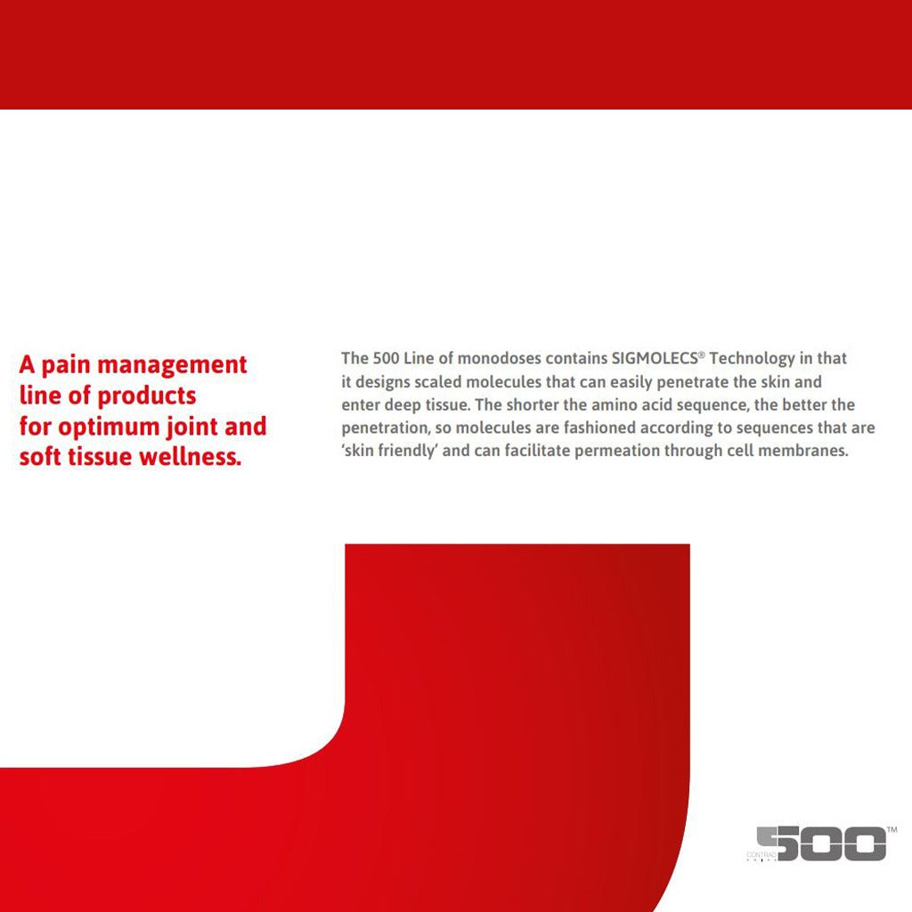 Contrad Swiss ST500™ Topical Gel For Joint Health is a hydrogel containing peptides and hyaluronic acid with a soothing action that helps to limit the physiological degeneration of tendons and muscles, thereby aiding joint movement. The 500 Line of monodoses contains SIGMOLECS® Technology in that it designs scaled molecules that can easily penetrate the skin and enter deep tissue. Sigmolecs® Technology is an advanced chemical profiling through structural assembling of key molecules, mostly proteins and peptides, that form actuated molecules by specifically: Improving their bio-activity in solution and in vivo; Increasing their transmembrane penetration; Creating precise specificity of action, particularly in intracellular signaling. SIGMOLECS® molecules induce signals to key amino acid to trigger specific physiological and metabolic activity. This is done by grafting bioactive peptides or amino acid (AA) sequences onto a source molecule, usually a natural source protein like Soy protein or Collagen peptides. Sigmolecs® molecules are really like microchips carrying the information to program desired relief into the patient. The peptides in ST500TM are SH-Polypeptide 29 which codes for interleukin 3 (IL-3) and SH-Tripeptide 1 which codes for Fibroblast Growth Factor 1 (FGF-1). IL-3 is a potent growth- and differentiation promoting cytokine. IL-3 has been demonstrated to reduce cartilage destruction and the pathological bone resorption that can result from expression of pro-inflammatory signals and matrix metalloproteinases. Additionally, IL-3 has been linked to expression of nerve growth factor (NGF) and its role in wound healing. ST500 can be used for pre and post regenerative treatments.