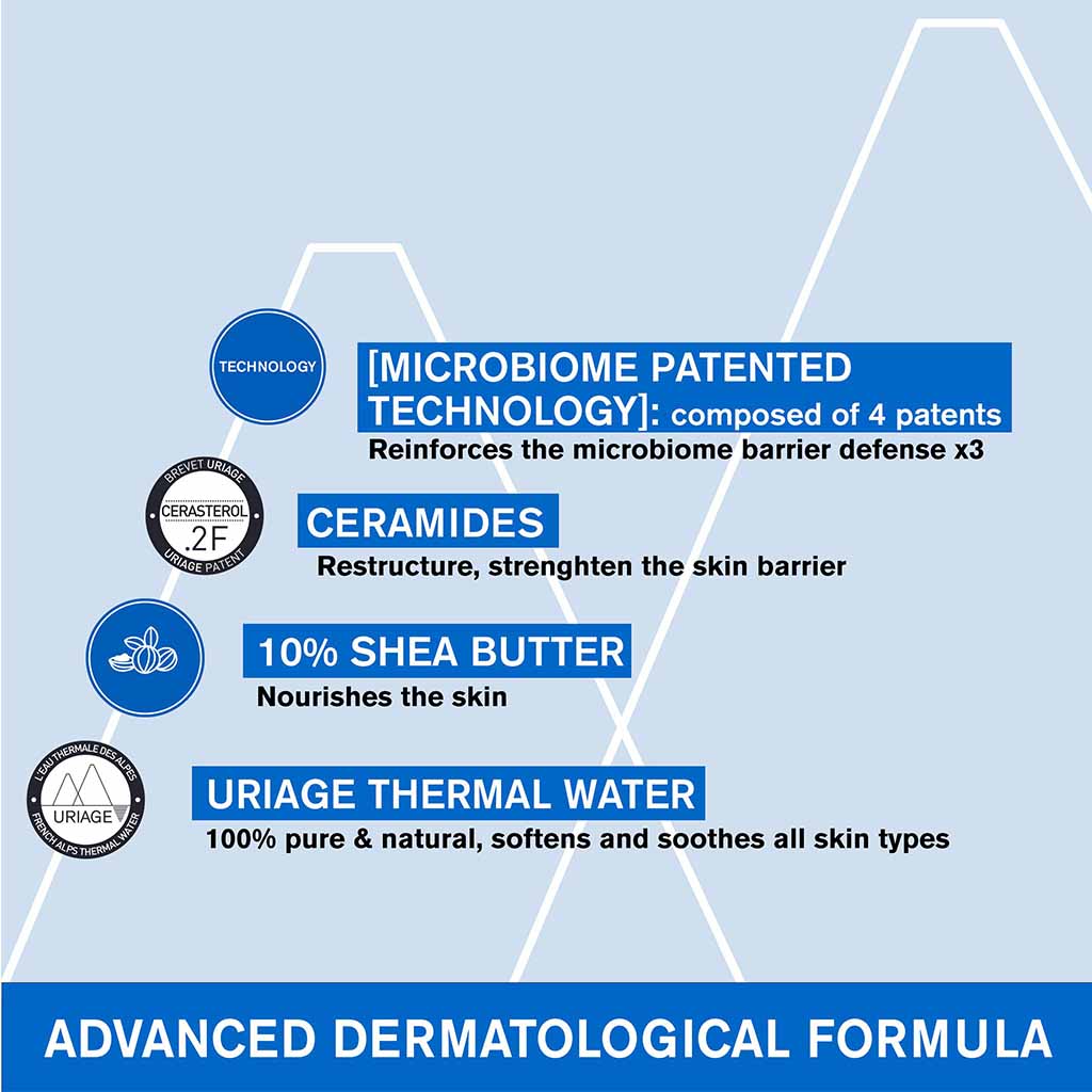 - Enriched with Uriage Thermal water, shea butter & illipe oil