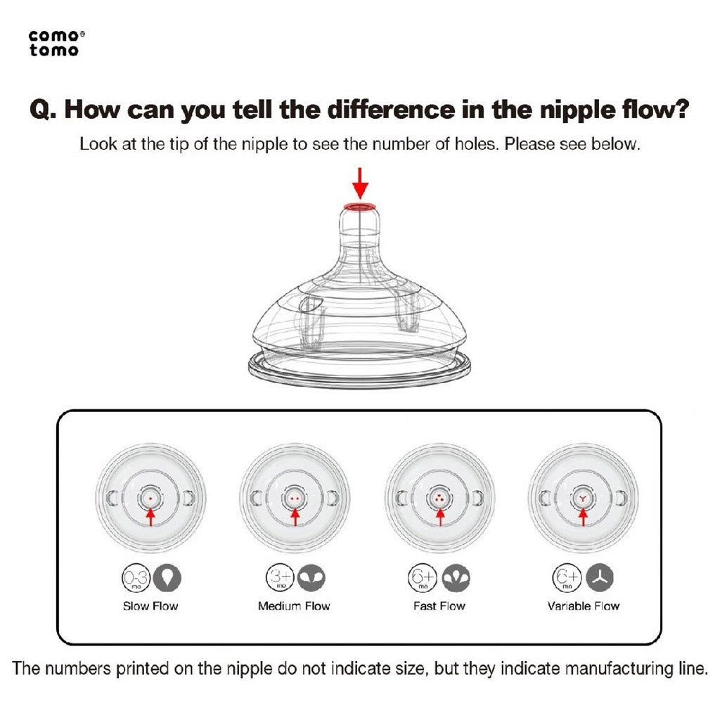 Comotomo Natural Teat Silicone Nipple Variable Flow are the soft, naturally shaped nipple refills replacement parts, designed specifically for Comotomo baby bottles. Each package comes with two silicone nipples designed to closely mimic natural breastfeeding. Comotomo Natural Teat Silicone Nipples are ideal for babies who have difficulty transitioning from breast to bottle feeding. Each replacement nipple also has two truly innovative holes built in to prevent colic, while completely eliminating leakage issues. It is featured with an innovative dual anti-colic vents that are cleverly designed to prevent colic, while completely eliminating annoying leaks. These teats are made of high grade silicone and is free from harmful chemicals like BPA, PVC and phthalate. These are safe in microwave, boiling water, dishwashers and sterilizers.
