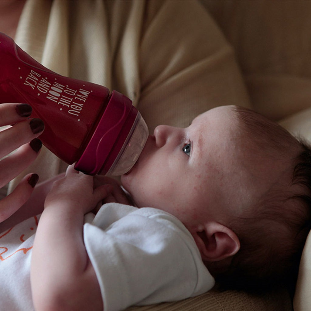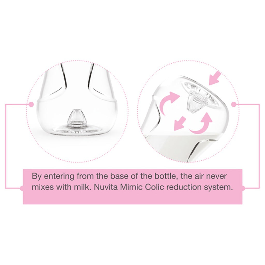 Nuvita Mimic Cool Anti-Colic Baby Feeding Bottle helps you alternate between breast and bottle as naturally as possible. Being able to breastfeed for as long as possible is of great benefit for both mother and baby. But sometimes this is simply not possible. Whether it is due to health problems or latch issues or simply because the mother has returned to work and needs to be away from the baby for extended periods of time, the Nuvita Mimic Baby Bottles allow for an easy and stress-free transition from breast to bottle. The Nuvita Mimic feeding bottle comes with a special teat that imitates the shape, elasticity, and movement of the mother's nipple without interrupting the baby's habit for natural breastfeeding. A great help for mothers and less difficulty for baby. Through a specially designed valve, the air enters through the base of the baby bottle and therefore never mixes with the milk. This enables the baby to feed without ever swallowing air. The Nuvita Mimic Baby bottles are compatible with 4 different teats' sizes. This allows you to adapt the milk flow to your baby's age and type of formula (Slow flow (0m+), Medium flow (3m+), Fast flow (4m+), For baby food (6m+), the feeding bottle can grow along with your baby. The ergonomic design of the baby bottle makes it easy to grab for both you and your baby. The 360 degree flexible nipple ensures comfortable sucking for your baby in all positions. A convenient lid offers an easy opening of the bottle with just one finger. All Nuvita baby feeding bottles are inspired by and dedicated to babies, from newborns to three-year-old's around the world. Colors are subject to availability and may vary from the images shown.