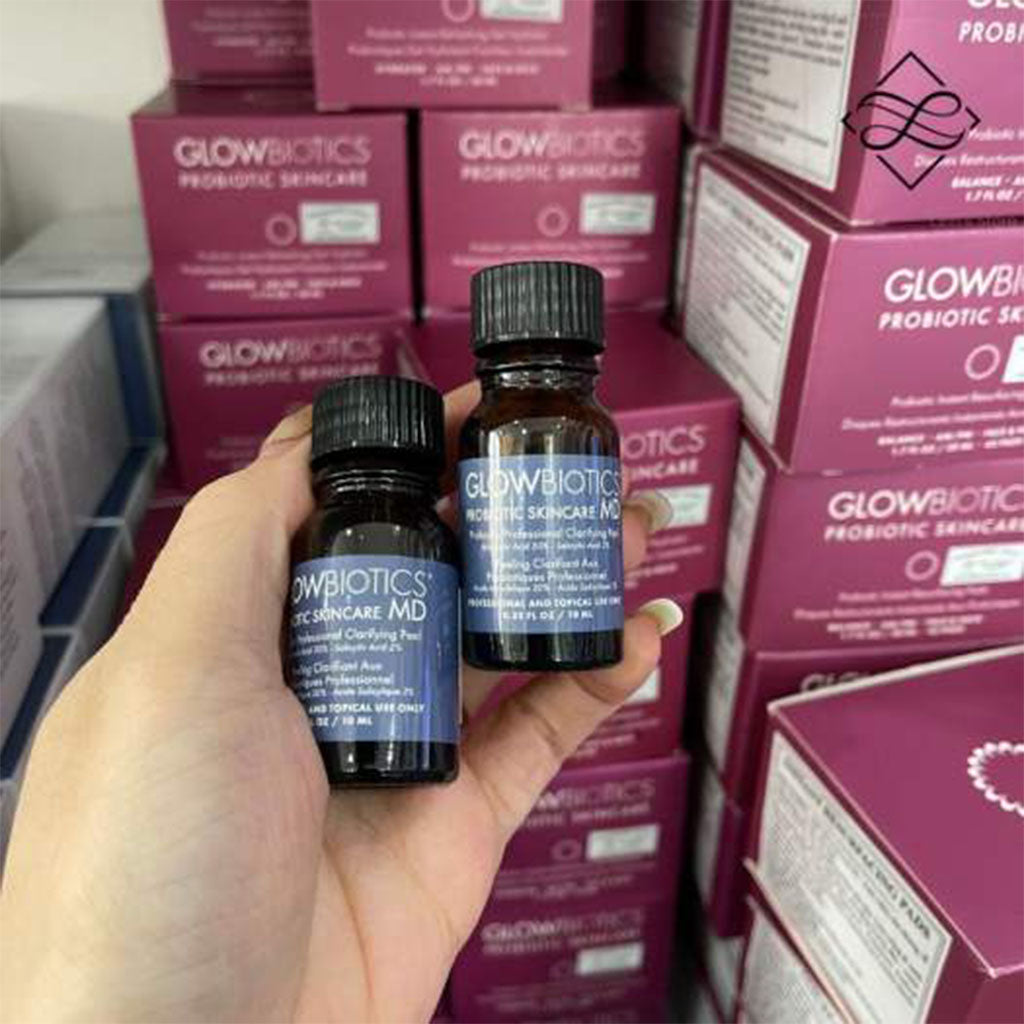 GlowBiotics Probiotic Clarifying Professional Peel For Acne contains Mandelic acid and Salicylic acid. Salicylic acid is a multifunctional beta-hydroxy acid (BHA) exfoliant; unclog pores, anti-irritant, and anti-inflammatory; proven to treat oily and problematic skin conditions. The ability of salicylic acid to exfoliate the stratum corneum makes it a good agent for peeling. In particular, the comedolytic property of salicylic acid makes it a useful peeling agent for patients with acne. Mandelic acid is a highly effective alpha-hydroxy acid (AHA) exfoliant; helps to improve texture and moisture retention; treats fine lines, wrinkles and unwanted brown pigment. Active probiotic bacteria helps to stimulate proteins in the skin and protect from further damage. It is GlowBiotics' philosophy of avoiding injury to stimulate the regeneration of healthier, youthful skin. As a pioneer in topical probiotics, GLOWBIOTICS Clinical Probiotic Treatments combine traditionally known Alpha & Beta Hydroxy Acids (AHA & BHA) and other trademark professional ingredients with the probiotics. The result of these revolutionary professional treatments offers a painless chemical peel experience for patients and instead, provide solutions for common skin challenges.