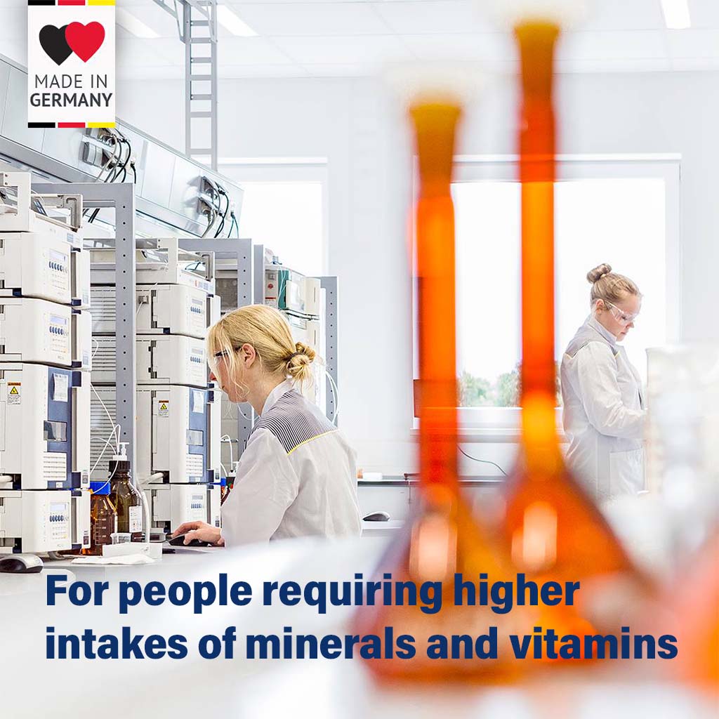 Doppelherz® aktiv Calciovin Liquid is an easy to swallow, great tasting liquid Calcium formula which has been designed for children, adults and the elderly. Calciovin Liquid is intended for people requiring higher intakes of minerals and vitamins essential in order to support bone formation and maintenance. Calcium, Magnesium, Manganese, Zinc, Vitamin D3 and Vitamin C play an important role in teeth and bone health. Adequate Calcium intake is required to support bone growth during childhood and bone maintenance during adulthood. Adults might be at risk for osteoporosis due to dietary Calcium deficit. Intake of Vitamin D3 promotes Calcium absorption and its incorporation into the bones. Magnesium participates in the constitution of the bone matrix and therefore plays a structural role essential for teeth and bones strength. One of the roles of Vitamin C is to enable collagen synthesis which is required to build the frame of the bone matrix. Formation of this collagen frame is stimulated by Zinc. Doppelherz® aktiv Calciovin Liquid is ideal to cover the needs for teeth and bones health of the whole family. Thanks to its liquid form the product is easy to dose.