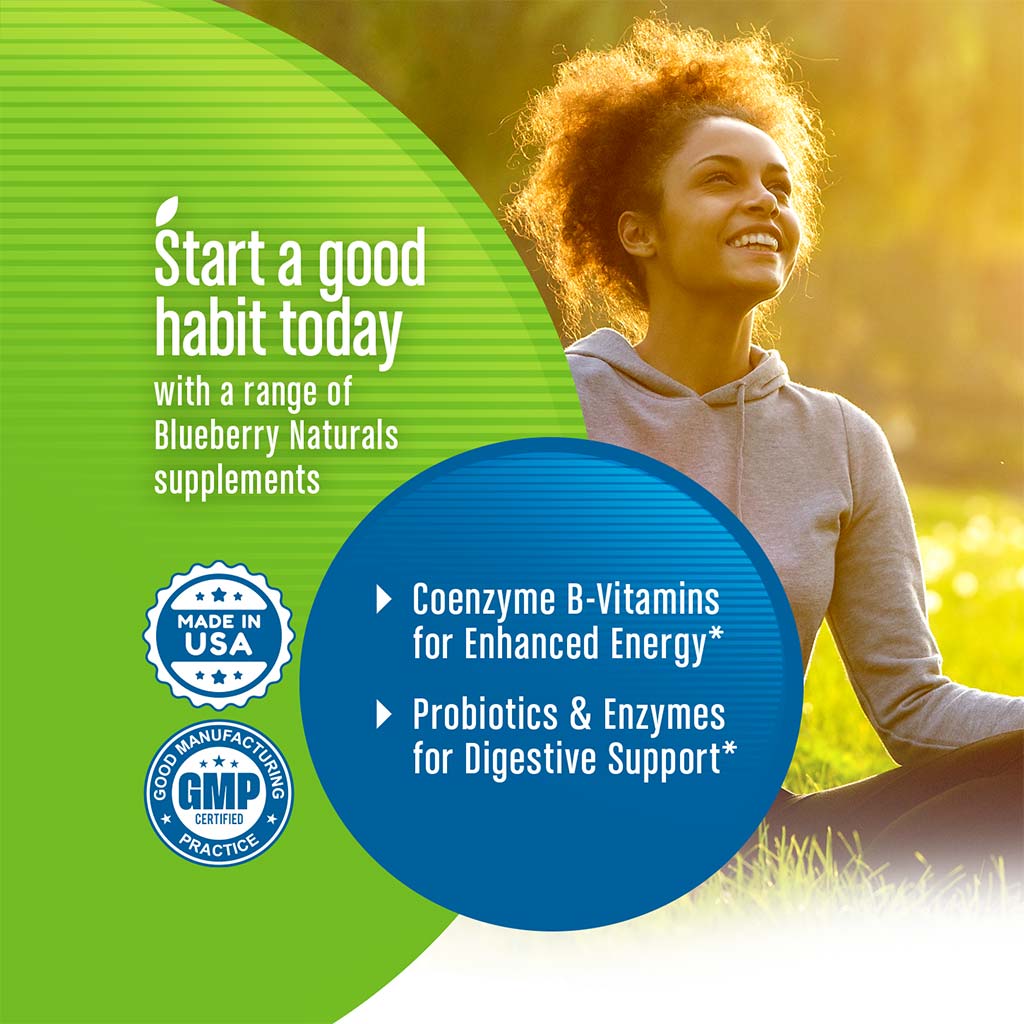Blueberry Naturals One Daily Women is rich in all vitamins, minerals, and antioxidants to meet the unique needs of women's hormonal balance. Formulated with 25 essential vitamins & minerals and 10 organic whole food fruit & vegetable blend, Blueberry Naturals One Daily Women is the perfect supplement for women's daily wellbeing. Women often lack a balance of nutrients in their bodies even with a healthy and nutritious diet. Blueberry Naturals One Daily Women can aid in fulfilling these gaps for your overall wellbeing. These don't just eradicate deficiencies but also reduce the risk of serious health conditions. Blueberry Naturals One Daily Women provides the perfect balance of vitamins, minerals, antioxidants, and herbs to meet the unique needs of women's hormonal balance. The formula helps fill in the nutrient gap in a woman's diet and provide immune support, increased energy, and mental alertness. It also helps form red blood cells and supports healthy hair, skin, nails, and feminine care. Antioxidants helps lower the risk of problems like ageing while boosting the immune system and keeping it germ-free. B vitamins help increase energy levels to ensure efficient metabolism and a healthy nervous system. It also helps in the formation of red blood cells and nerve cells to keep your brain working well. Vitamin C and niacin can improve the skin's health by reducing inflammation and regenerating fresh cells. Biotin helps cut down fat to create healthy hair and nails. Vitamin B6 is a vital element responsible for the production of GABA and Serotonin. The deficiency of these vitamins can result in an imbalance in your mood causing depression. Calcium and vitamin D can prevent osteoporosis and strengthen the bone structure. Blueberry Naturals One Daily Women Tablets also provides the extra mineral support with magnesium, calcium, iron, zinc, and selenium, as these minerals are critical for proper metabolic function, hormone balance and bone strength, among other health benefits.