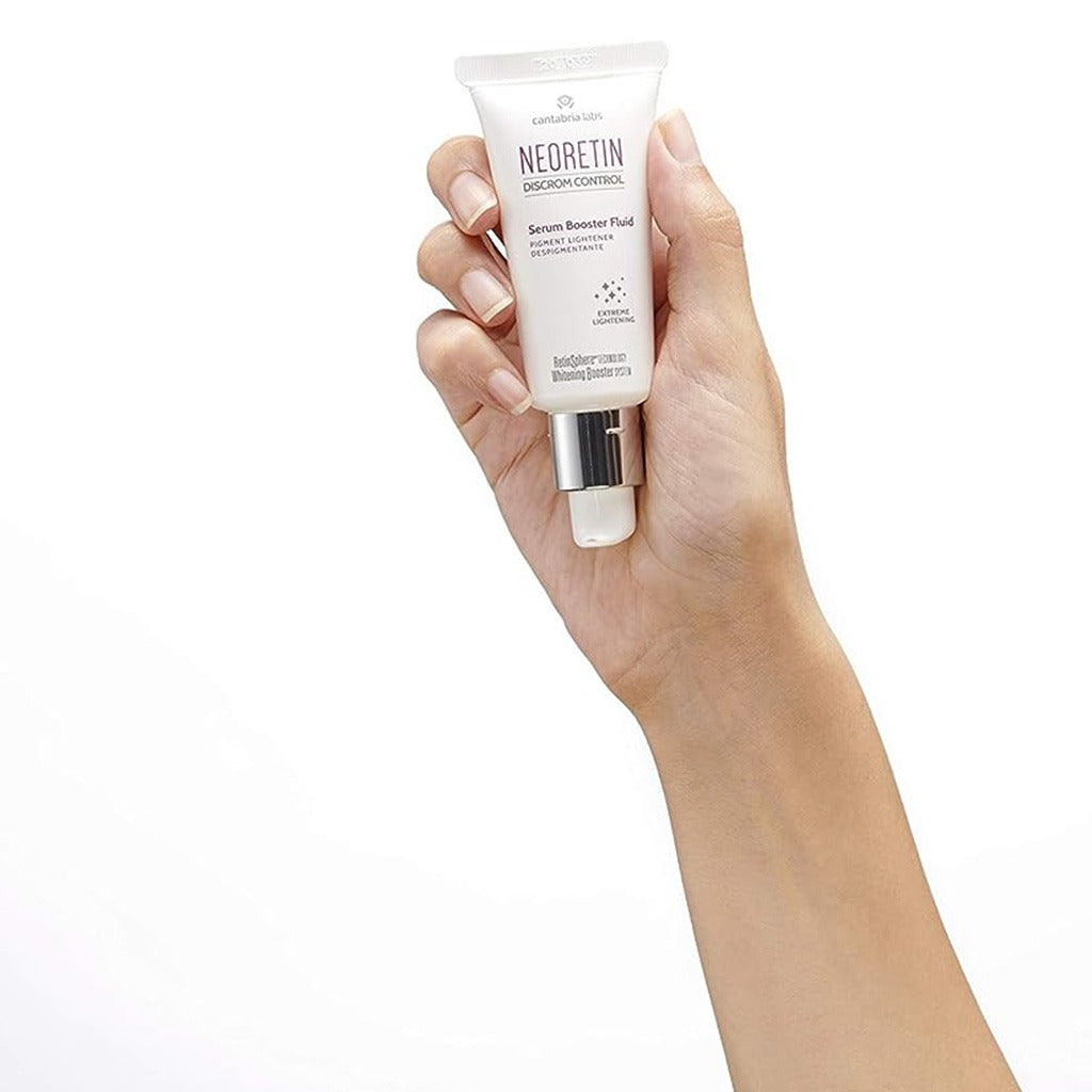 - Apply Neoretin Discrom Control Extreme Pigment Lightner Serum Booster Fluid in the morning and/or evening on cleansed skin on the face and neck. Shake before use. External use. In case of continued irritation, stop application. Avoid contact with eyes and mucous membranes if this occurs rinse with water.