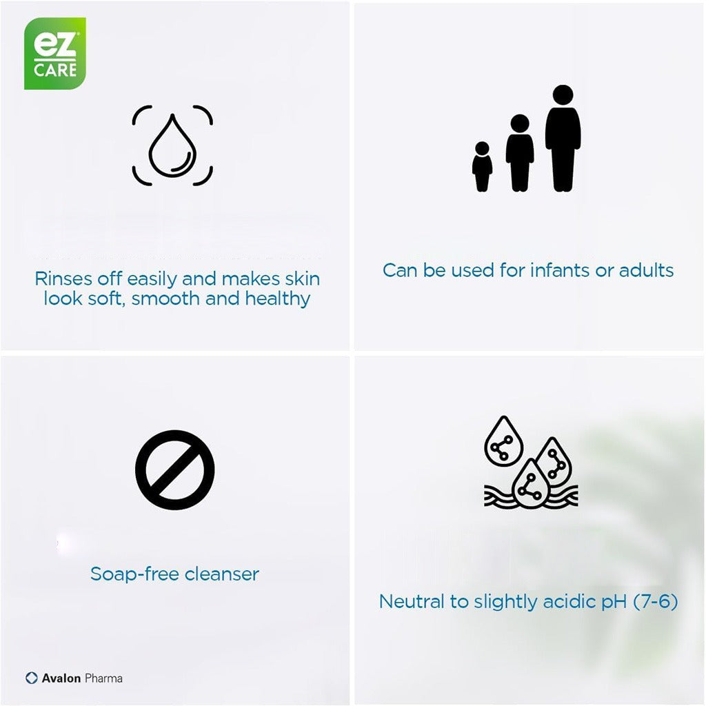 Avalon Ez Care Gentle Cleanser is a mild and non-irritating formulation designed to soothe the skin while effectively cleansing it. Its gentle nature makes it suitable even for a baby's delicate skin. This mild skin cleanser gently yet effectively removes dirt, makeup, and impurities from the skin without causing irritation. It gently cleanses and helps to retain skin's natural moisture barrier and improve the resilience of sensitive skin. Avalon Ez Care Gentle Cleanser is ideal for sensitive and dry skin. It is non-comedogenic hence does not clog the pores and ideal to use as everyday cleanser. Its mild and non-irritant formula makes it ideal to be used in conditions such as eczema, atopic dermatitis, contact dermatitis or allergies. Avalon Ez Care Gentle Cleanser offers a comprehensive solution for individuals with sensitive skin, effectively cleansing while maintaining skin hydration and protection.