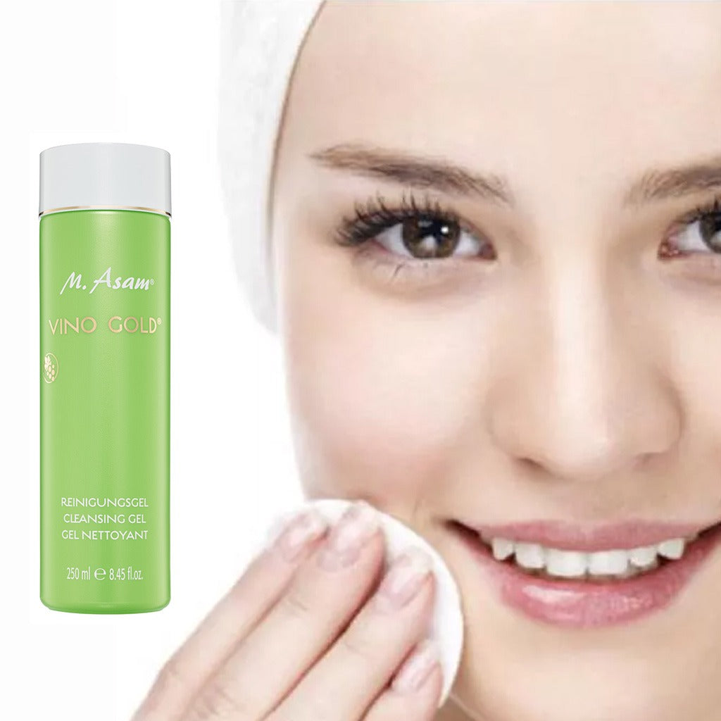 M. Asam Vino Gold Facial Cleansing Gel is with a refreshing fragrance free cleanser, helps to remove impurities and makeup. Cleansing gel for thorough cleaning of the skin. It has pleasant and delicate gel texture. The refreshing Vino Gold fragrance invigorates the senses. It contains Aloe Vera and Panthenol moisturize and nourish intensively. Aloe vera is a mild cleansing agent as it contains salicylic acid, which can remove the dead skin cells. It also prevents acne by removing bacteria from the clogged pores of your skin. Panthenol helps to unclog the pores and rid the skin of dirt, oiliness and makeup residue. It cools and refreshes your face without irritating or drying it out.