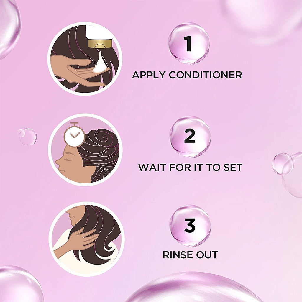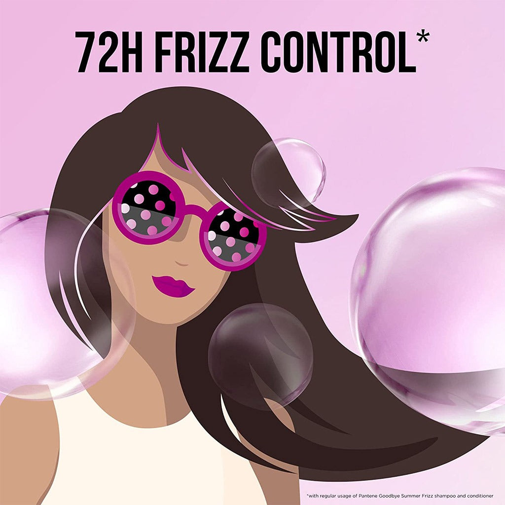 Pantene Pro-V Goodbye Summer Frizz Control Conditioner is a multitasking anti-frizz formula that helps to keep unruly and wavy hair sleek and soft all day. It helps to lock out humidity, leaving hair beautifully silky-smooth, and also turns frizzy and damaged hair into more manageable and easier to style. The conditioner contains Pantene's unique nourishing Pro-V formula that provides protection against styling damage. Pro-V is a unique formula designed to visibly strengthen your hair, the Pro-V formula is constantly improved and innovated by Pantene's global network of hair science experts. With 70 years-experience Pantene aim to ensure you enjoy hair stronger than ever. Here's to great looking hair that starts with strength. Combining Pantene's renowned PRO-Vitamin B5 with hair nutrients in a nourishing blend to support your pursuit of strong & healthy hair. The 72-hour frizz control formula moisturizes your hair so it effectively protects from fizziness. Fir better result use it with Pantene Pro-V Goodbye Summer Frizz control shampoo and leave-in oil replacement for beautiful, frizz-free hair all summer long.