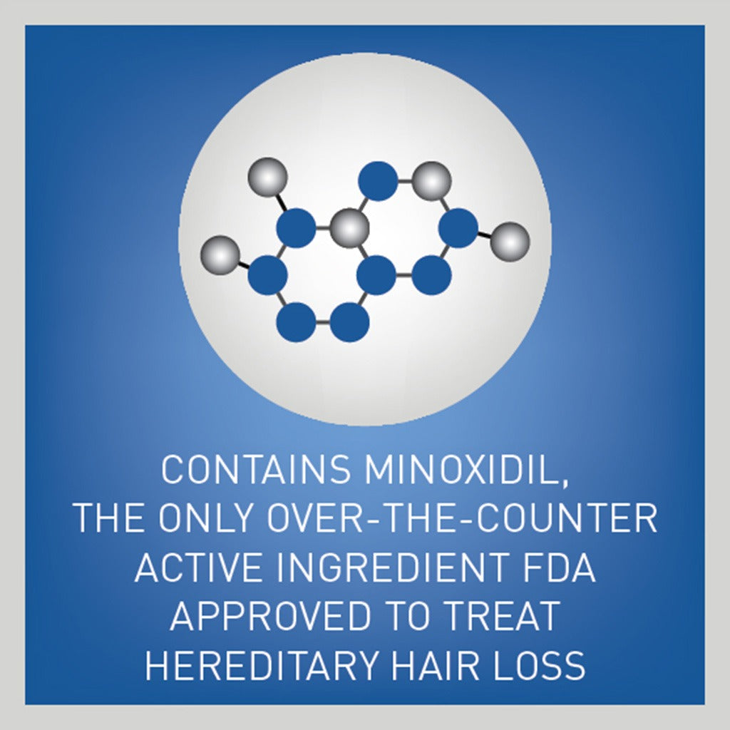 Regaine For Men 5% Minoxidil Extra Strength Topical Hair Regrowth Foam contains minoxidil at a concentration equivalent to 50 mg per ml, the first and only scientifically proven foam hair loss treatment which works by increasing the supply of blood and nutrients to hair follicles, helping to strengthen and revitalise the hair follicles for hair regrowth working deep at the root. It is exclusively indicated for the treatment of alopecia androgenetica in males. Regaine stimulates hair growth and stabilizes hair loss in patients with alopecia androgenetica. Minoxidil is the only clinically proven treatment for male pattern hair loss and it’s the active ingredient in REGAINE® for Men Solution which helps to promote hair growth in 4 ways: Reverses miniaturisation of follicles, Increases blood flow around follicles, Stimulates follicle movement from resting to hair growth phase, Extends each follicle’s growth phase. During the first few weeks of use, there may be a temporary increase in hair shedding. This is a good sign and means that the new hair growth cycle is beginning. It is important that you keep applying your Regaine morning and night so your hair continues to grow. When used twice daily as directed, new hair growth may be seen as early as 8 weeks. It is a white to off white foam; designed to dissolve into the scalp and be rapidly absorbed.