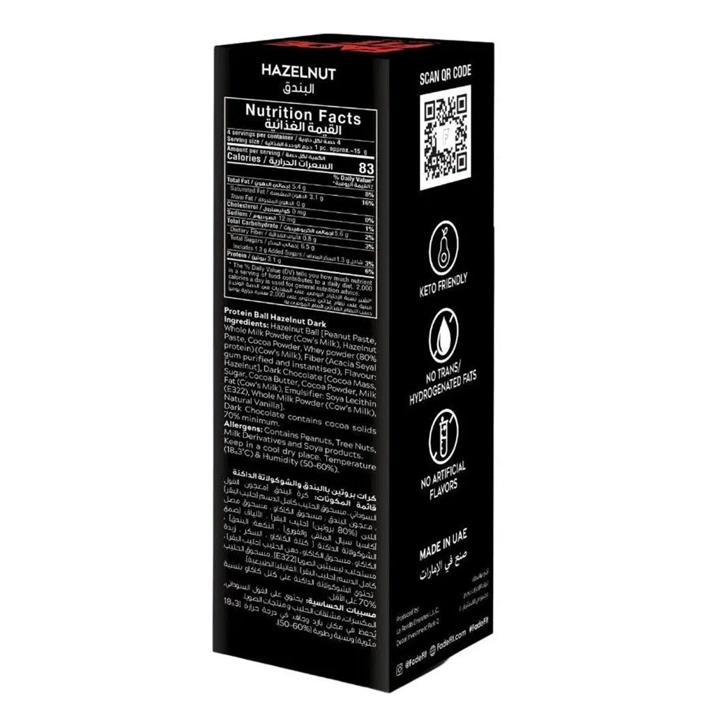 Fade Fit Hazelnut Protein Balls Snack are the healthier snack option for all. This is the protein packed snacks made with hazelnut, whey protein powder, and dark chocolate. The inclusion of hazelnut & whey protein powder ensures that these protein balls are a good source of protein, which is essential for muscle repair and overall bodily functions. Dark chocolate is known for its antioxidants and potential health benefits. The low sugar content makes these snacks suitable for those who want to control their sugar intake while still enjoying a sweet treat. This 60g pack is packed with nourishing proteins and antioxidants, making it a perfect snack for fitness enthusiasts and chocolate lovers alike. Every bite of this dark chocolate hazelnut protein ball offers a rich, velvety taste that will satisfy your sweet tooth without compromising your dietary goals. It's low in sugar and contains no artificial flavors or preservatives. This is not just a treat, it's a nutritious snack that fuels your body and keeps you energized throughout the day. The main concept of Fade Fit is the use of all-natural ingredients to ensure the product is the healthier snack option. Indulge in the guilt-free pleasure of Fade Fit protein ball! Fade Fit Hazelnut Protein Balls Snack are an ideal option for post-workout recovery or a mid-day pick-me-up, Fade Fit Protein Hazelnut is your delicious companion on the journey to a healthier lifestyle.