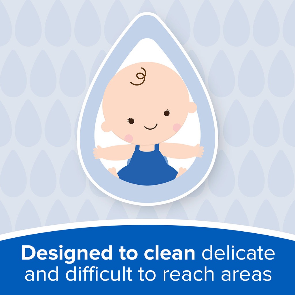 • Cleans in between baby’s fingers, toes and other creases on the skin
