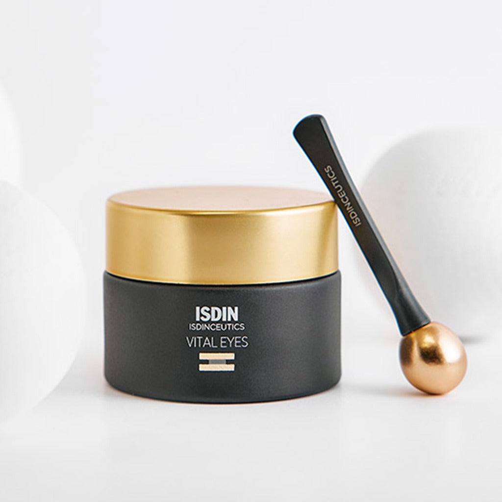 Isdin Isdinceutics Rejuvenate Vital Eyes Eye Cream, an anti-wrinkle eye contour, is a repairing cream for the eye contour zone, with melatonin and caffeine, that helps to reduce fine lines and wrinkles. Its ingredients stimulate the antioxidant defenses of the skin and promote a detox action, Vital Eyes applicator provides a cooling effect that helps reveal a fresher look. The cream is formulated with ingredients like melatonin, caffeine, liftfirm and rice extract. Melatonin stimulates the skin's antioxidant defenses to combat oxidative stress to which we are exposed during the day. Liftfirm promotes an immediate lifting effect that helps to smooth the appearance of fine lines and wrinkles. caffeine helps to detoxify the skin, has antioxidant properties and helps fight photoaging of the skin. Rice extract increases skin protection to decrease premature aging. Vital Eyes applicator provides a cooling effect that helps to decongest the area and refresh the look. Apply the cream while massaging the area to improve microcirculation of the zone. Results are visible only 28 days after application. ISDIN is a leading company in European dermocosmetics, are now present across the globe, working hand-in-hand with scientific communities and dermatologists to provide a range of advanced skin solutions suited to your skin's every need. ISDIN is still at the forefront of skincare research, pushing the boundaries of cosmetic formulation.