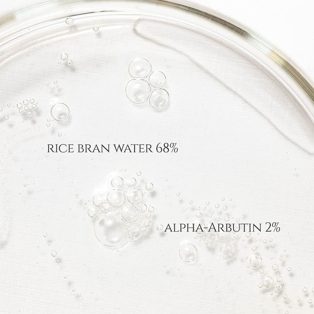 - Infused with 68% rice bran water and 2% alpha arbutin