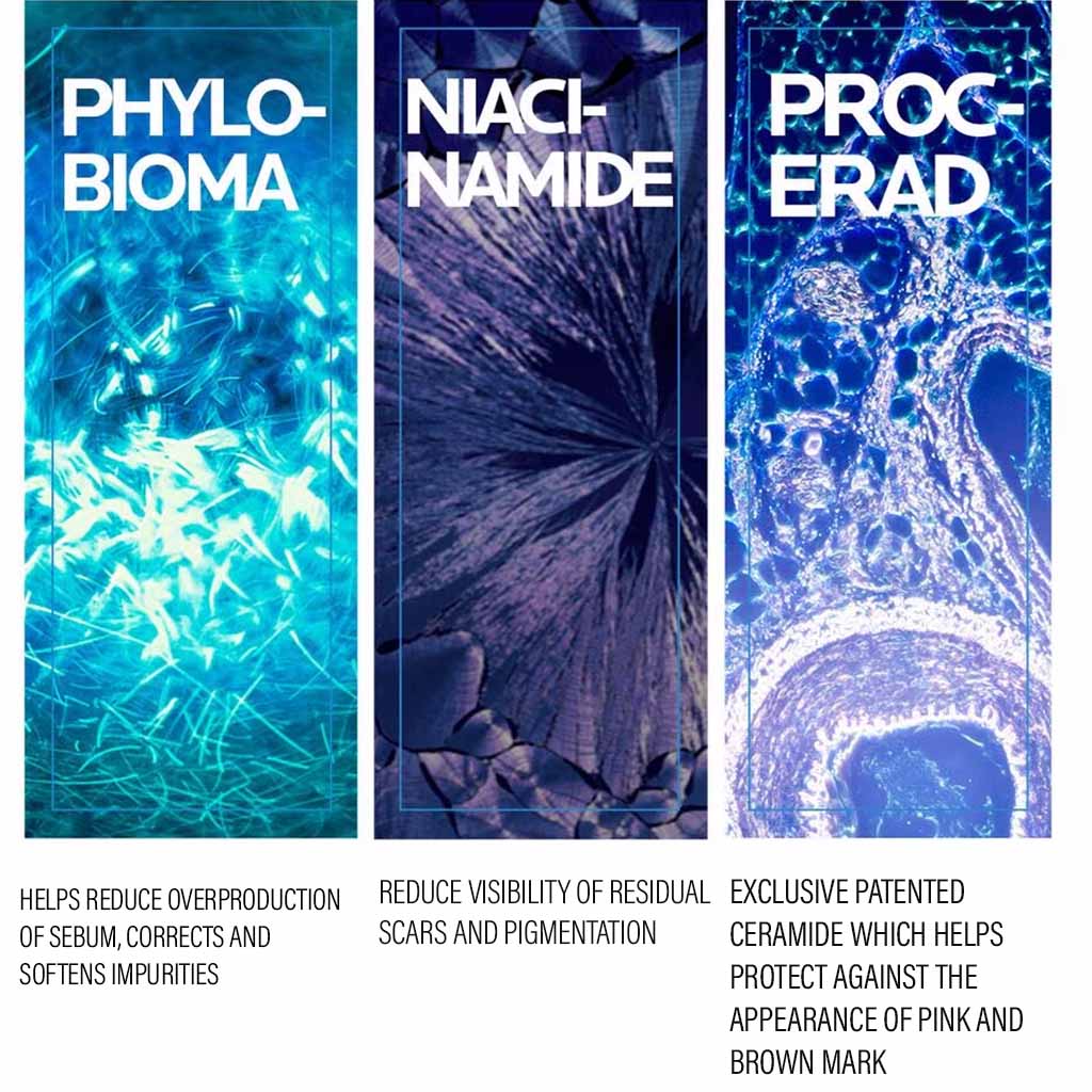 - Proven to reduce biofilm, sebum overproduction, inflammation and hyperkeratinization