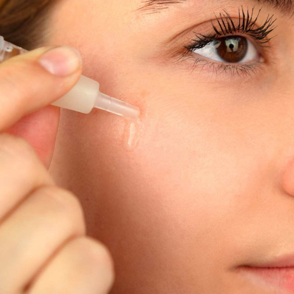 • Press the applicator to dispense half of the formula. Apply to face and neck, morning and night. Close the ampoule with the lid and place it on the pedestal