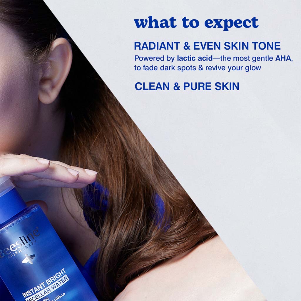 • Follow these tips to guarantee the best results: use Beesline Instant Bright Fragrance - Free Micellar Water for Face, Eyes & Lips to remove daily impurities and makeup: mascara, eyeliner, lipstick, foundation