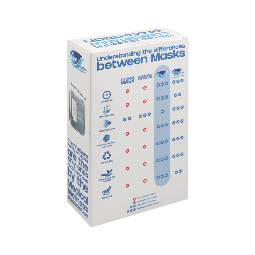 Fine Guard Comfort Reusable Protective Mask an incredibly comfortable mask, that protects you and your family, utilizing the germ-killing LIVINGUARD technology and can help prevent infection. The basic textile masks provide high levels of comfort yet can be poor at filtration of the air one breathes through it. High filtration masks like N95 provide for better protection, yet can be quite uncomfortable to wear for extended periods. If you are constantly touching your mask and face, making adjustments, and even removing the mask for periods of time, this mask would be well suited for both comfort and protection.