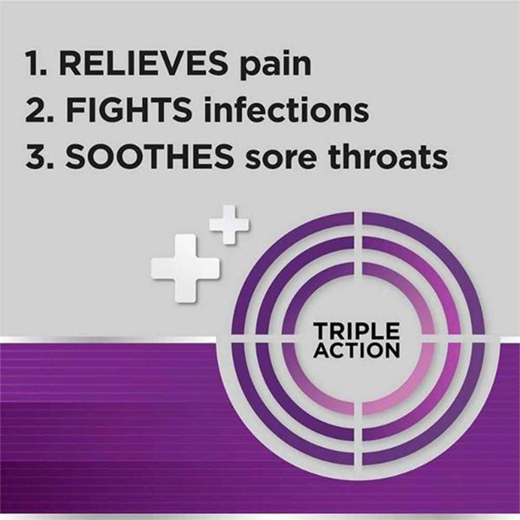 Strepsils Extra Blackcurrant Lozenges containing Hexylresorcinol 2.4mg - an ingredient which is both antiseptic to fight bacterial throat infections but also has anesthetic properties to numb throat pain.