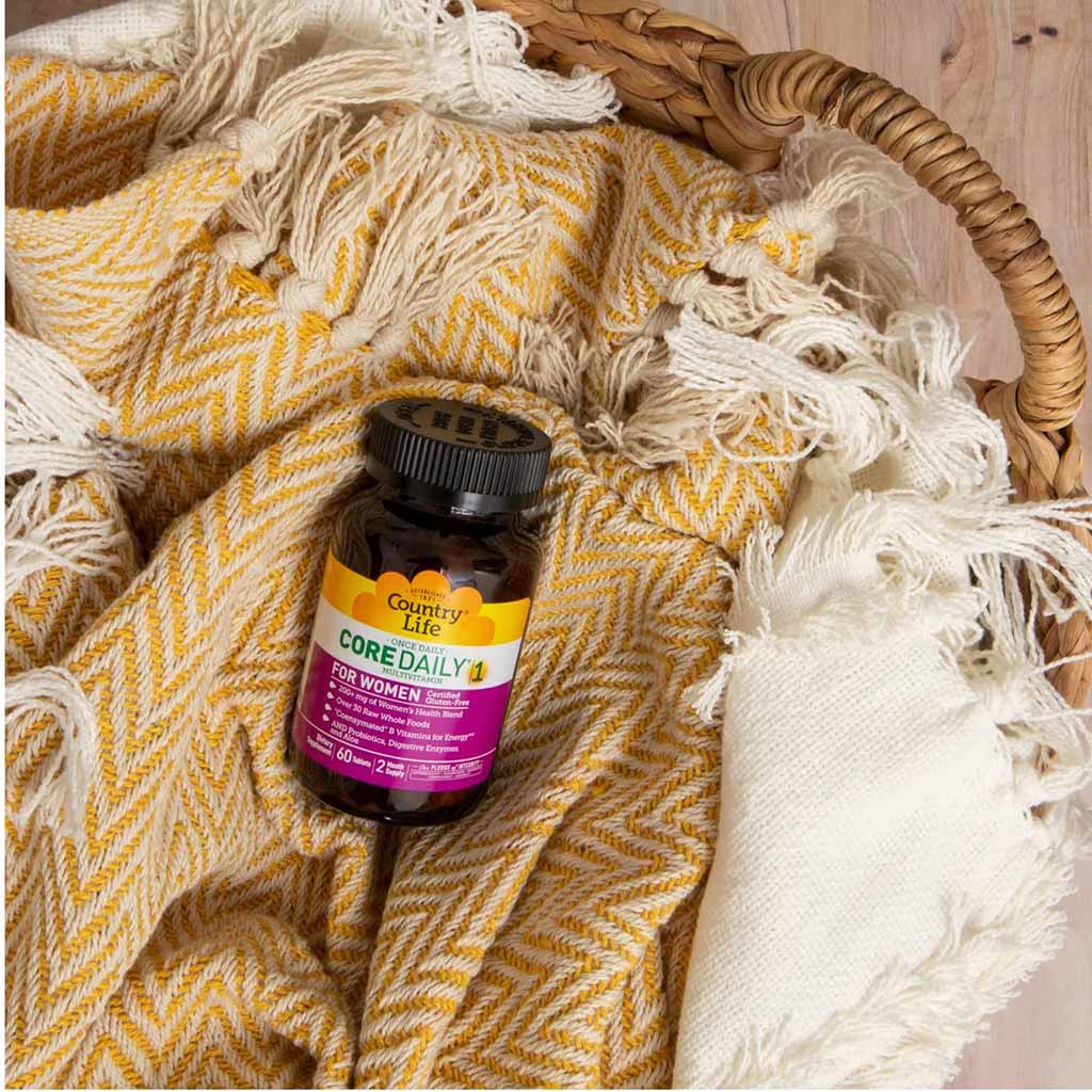 - Adult females take one Country Life Core Daily-1 Multivitamin Supplement tablet daily with food