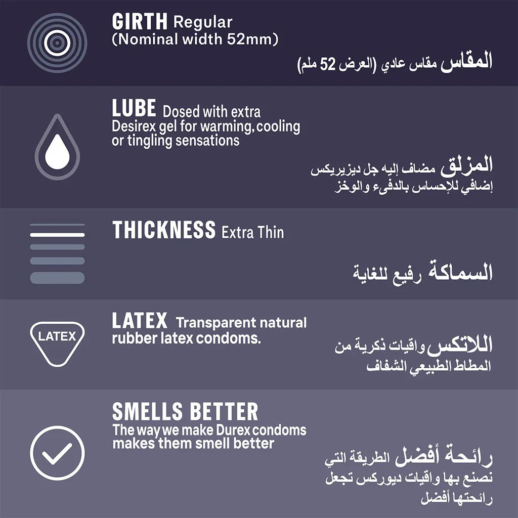 Durex Maxima Condoms are made from transparent natural rubber latex with a nominal width of 52 mm. Each condom is specially made which makes them smell better. All Durex condoms are 100% electronically tested to maximize your pleasure.