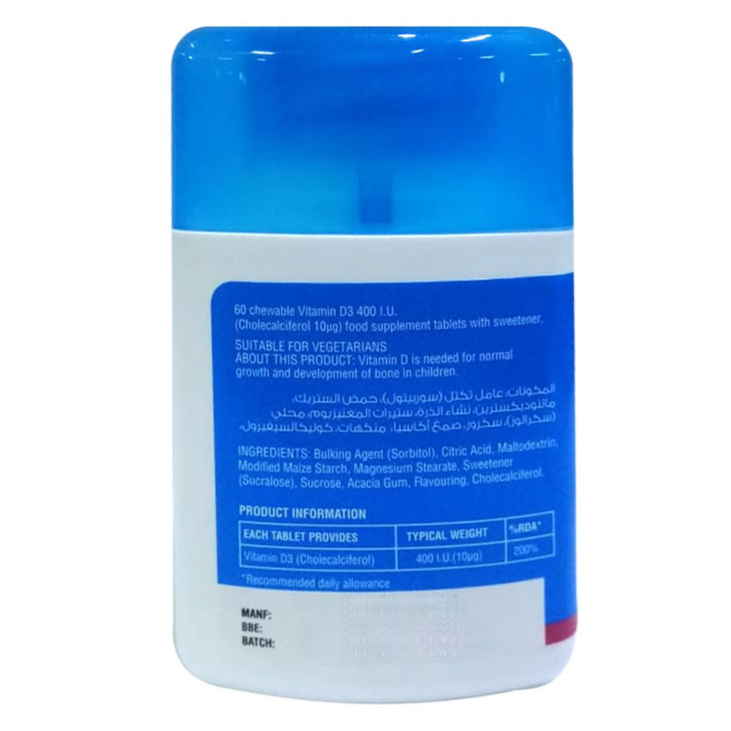 Vmin D vitamin D chewable tablet contains 400IU of Vitamin D in delicious raspberry flavor for the development of bones and teeth. It is formulated especially for kids to support normal growth and enhance immune function. Vitamin D is also known as the sunshine vitamin essential for bone and muscle health. It is a valuable tool in assisting in calcium absorption and formation of stronger bones and teeth in children. Low vitamin D can cause low calcium, which can lead to muscle cramps in children. Very low vitamin D can lead to soft bones, causing rickets in children and a condition called osteomalacia in adolescents and adults. Rickets only occur in growing children, if the child has softer bones from low vitamin D, the bones can bend and cause 'bowlegs' or 'knock knees', as well as other changes. So, intake of Vitamin D is essential for health development of bones and teeth in growing children.