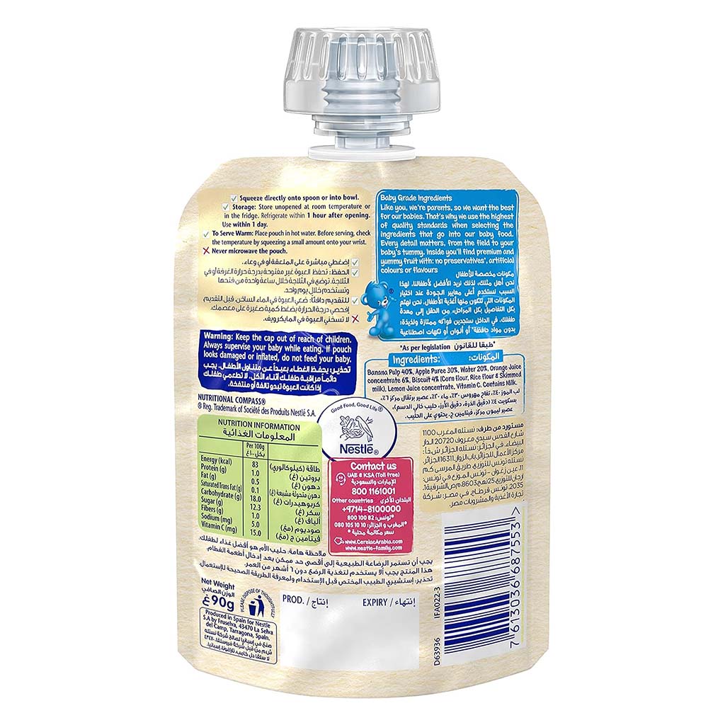 - Always start by washing your hands thoroughly with soap and water. Have a clean and sterilized baby spoon ready for feeding. Squeeze the Nestle Cerelac Fruits Puree Pouch With Banana, Orange & Biscuit directly onto spoon or into bowl. Using the clean baby spoon, scoop a small amount of the Nestle Cerelac Fruits Puree from the pouch and offer it to your baby. Begin with a small quantity, as it's always best to start with a little and see how your baby responds. Allow your baby to taste it and observe their reaction.