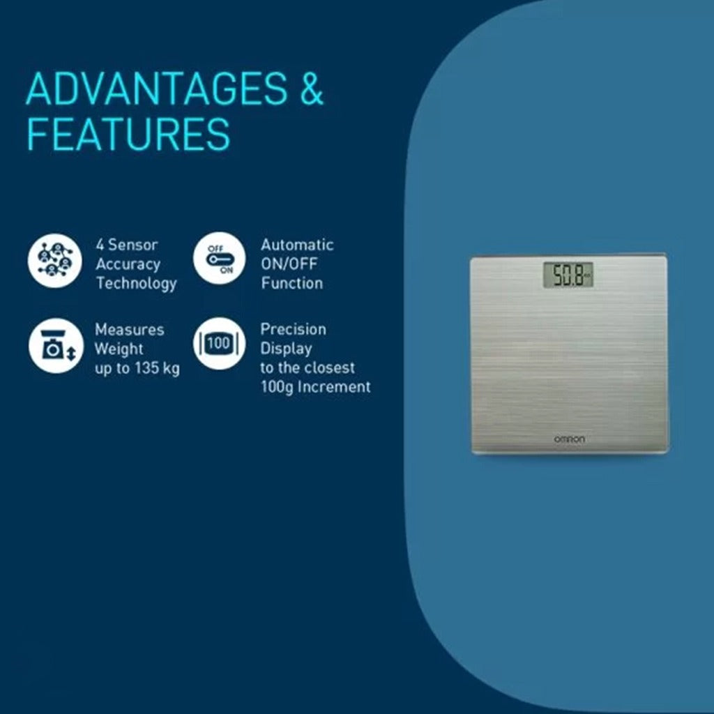 Omron HN286 digital weighing scale is a combination of modern design with accuracy. It has a tempered glass for safety. This weighing scale automatically switches off in 16 seconds while not in use and when anyone stand on it will restart, saving battery in a smart way. It uses a 4-sensor technology and has four sensors at each corner of the scale to help weigh even 100 grams. This digital weighing scale can withstand a maximum weight of up to 180 kilograms.