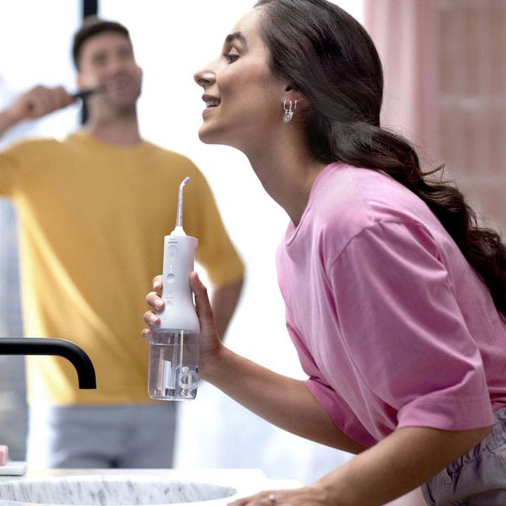 Philips Sonicare Cordless Power Flosser 2000, HX3801/11 is the cordless, compact, ergonomic oral irrigator which offers a convenient solution for everyday flossing. It features a standard single-stream tip that boosts pressure for spot cleaning and removing food debris when you need it. Philips Sonicare HX3801/11 Cordless Power Flosser 2000 is designed to remove plaque and food debris even from hard-to-reach areas. It features a 360° rotating nozzle which helps to access those hard-to-reach areas, so that you can use the device in any orientation. Reservoir capacity of 250 ml holds enough water for a recommended 60-second clean. Simply twist and remove or use the side-fill door for easy refilling. Convenient charging with a USB-C cable uses the same connection as most mobile phone or tablet. You can adjust the intensity level adapts for comfort. It helps to leave your mouth feeling fresh and clean without the hassle of string flossing.
