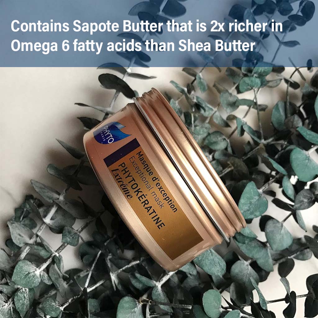 Phyto Phytokeratine Extreme Exceptional Repair Mask is an exceptional mask that penetrates to rebuild and regenerate each hair fibre, restoring elasticity and strengthening hair to renew it with ultimate softness, suppleness, and shine. This ultra-rich formula, designed to replenish and regenerate hair without weighing it down. Phyto's 'Exceptional Mask' has the power to transform very damaged, over-processed hair. With the proprietary botanical keratin, the heart of ‘Phytokeratine Extreme' profound powers of transformation, hair is deeply repaired as its core. A potent concentration of precious baobab oil and rare sapotte butter - twice as rich in essential fatty acids than shea butter - delivers complete nourishment and restores the hydrolipidic film. Even the driest, most porous hair is renewed, regaining exceptional silkiness and suppleness. In a short time, strength and elasticity improves. Hair looks and feels supremely soft and sublimely touchable.