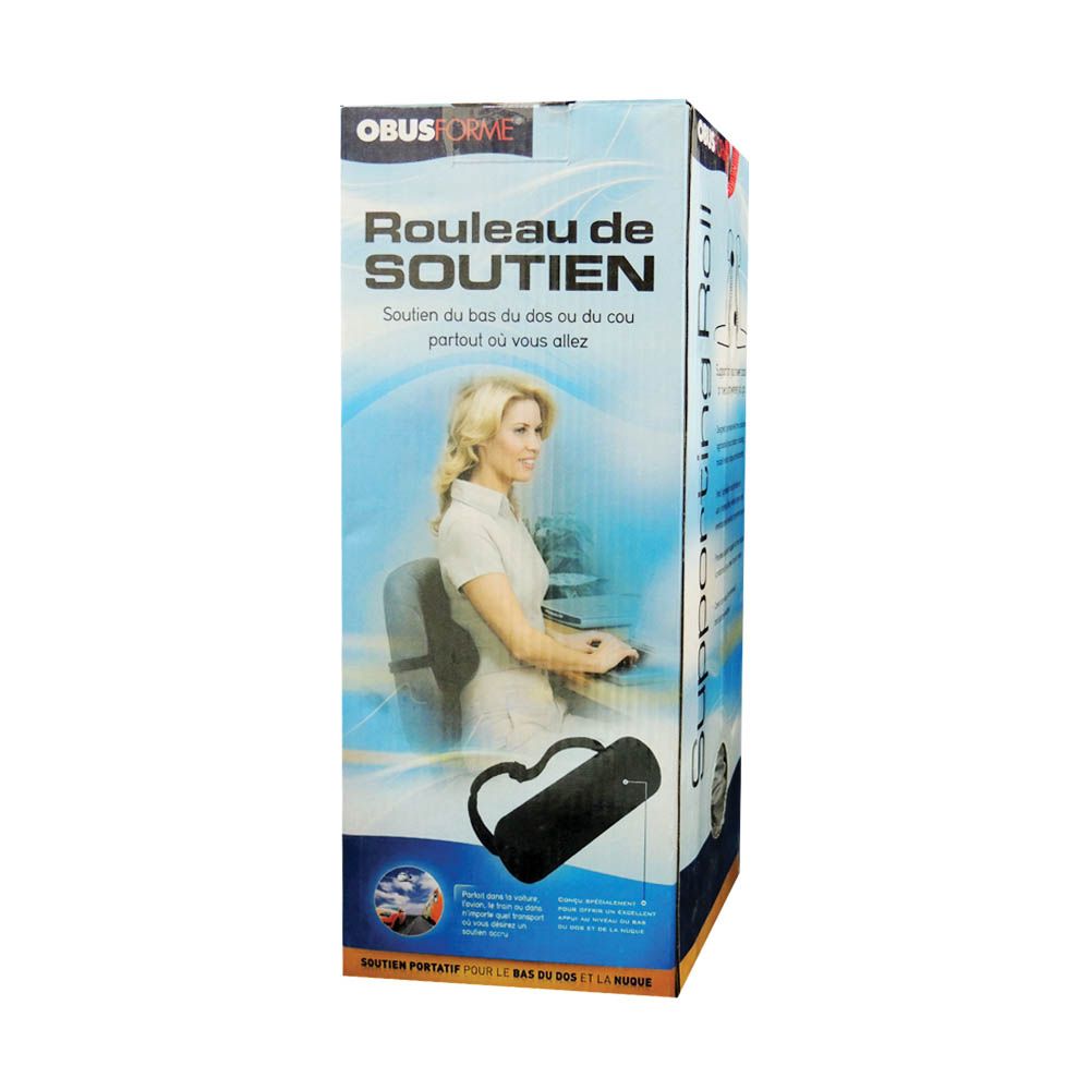 Obus Forme Supporting Roll is made with polyurethane foam and supports low back or neck. The elastic strap holds the Obus Forme Supporting Roll in the position you desire and the brushed polyester cover can be removed and sponge washed. This is small, lightweight and portable for use anywhere you sit at home, in the office and on the go.