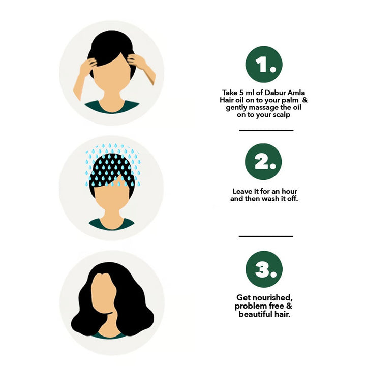 • Massage Dabur Amla hair oil onto your scalp. Leave for an hour.