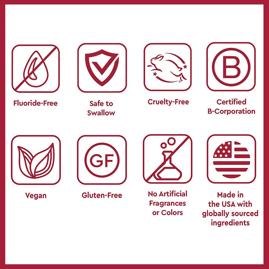 - Sugar free, alcohol free, fluoride free, SLS free and gluten free