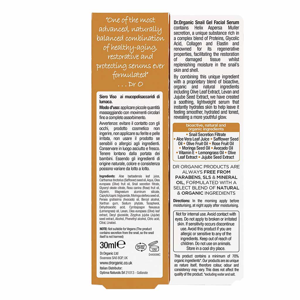 Dr Organic Snail Gel Facial Serum is the combination of organic snail gel with a proprietary blend of bioactive, organic and natural ingredients including olive leaf extract, levan and jujube seed extract. It is a soothing, lightweight serum that instantly hydrates the skin to help leave it feeling smoother, hydrated and toned, revealing a more youthful glow.