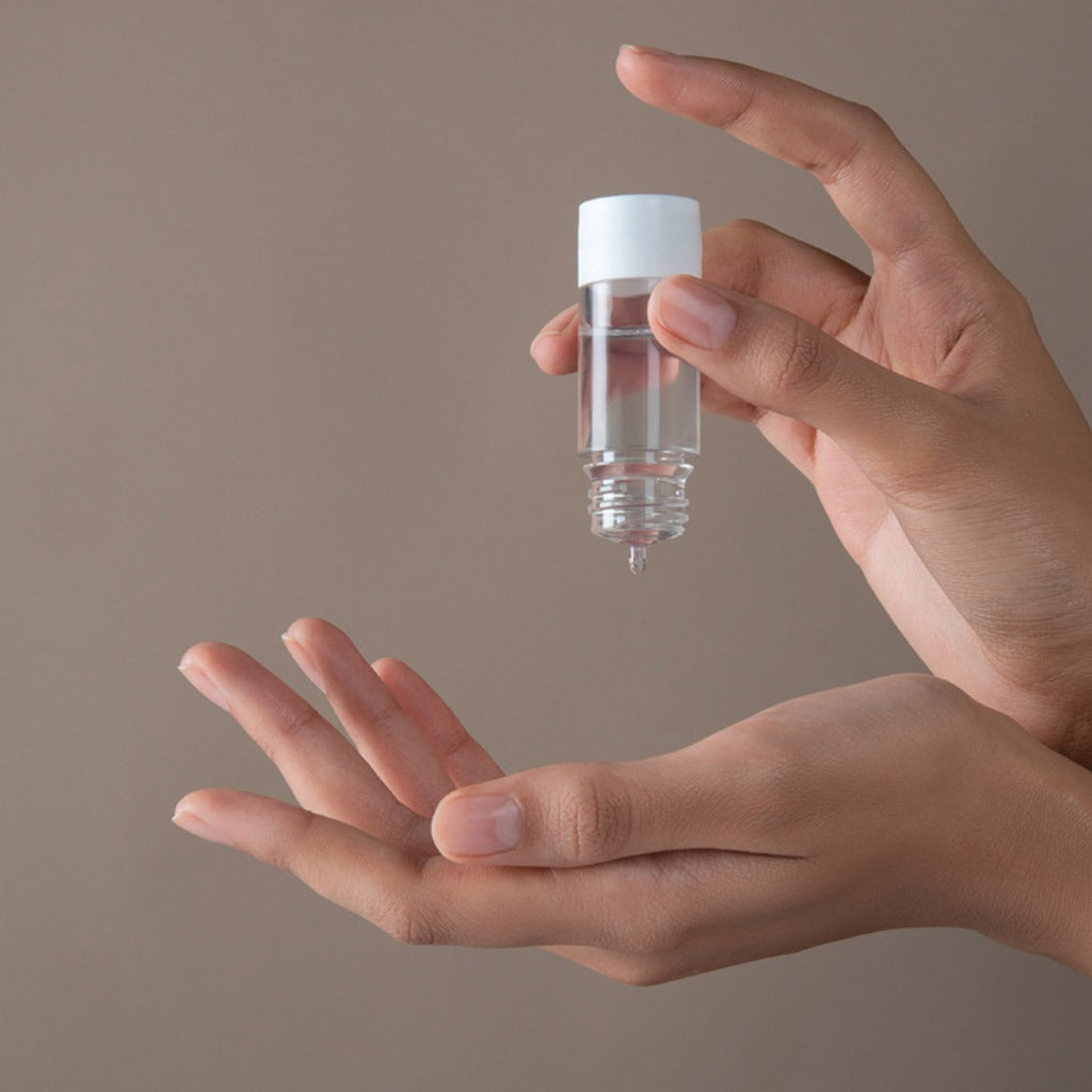 - Apply to the whole face in the form of 4 drops by pressing the back of the bottle