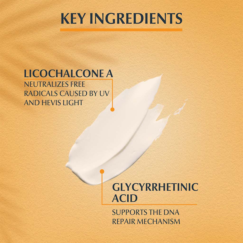 • Offers very high factor UVA/UVB protection and HEVIS light defense