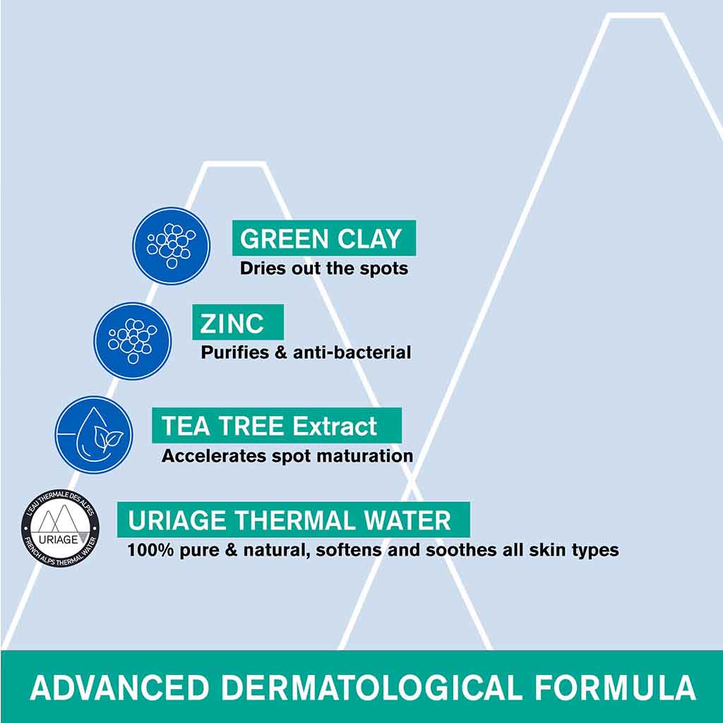 - Enriched with Uriage Thermal Water, Schist extract, Green clay & Zinc