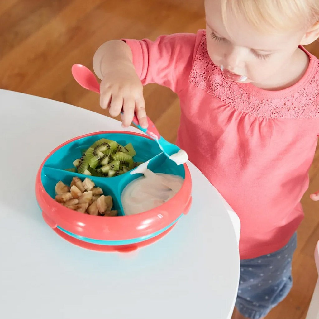 The First Years Inside Scoop Suction Sectioned Plate is designed for early stages of weaning, with a unique curved rim to help guide more food onto forks and spoons. This one is made with a with a suction base to avoid slipping and sliding, this inner bowl is the bowl you'll reach for again and again. It also has tree sessions insides the plate which allows to keep baby food separate from one another. From those wonderful first smiles to the first foods tossed on the floor, The First Years encourage you to celebrate all of it. Whether it's your first bottle feeding, first time filling a sippy cup, or first try at potty training; The First Year's thoughtfully designed products are here to help you. The First Years knows babies. For 70 years The First Years have worked actively with both parents and parenting experts to discover clever solutions to the real challenges that new parents face every day. After all, a new parent is born alongside every bundle of joy! Colors are subject to availability and may vary from the images shown.