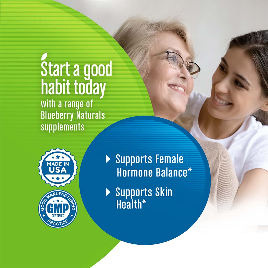 Blueberry Naturals Evening Primrose Oil Softgel contains Evening Primrose Oil which is a botanical derivative, that is rich in Gamma Linolenic Acid. GLA is an important fatty acid for skin health and has been studied in the area of supporting female hormone balance. GLA is an omega-6 fatty acid found in plant oils. Evening primrose oil helps support hormonal balance and has been found to be effective at reducing menstrual cramping, bloat, water retention, breast tenderness and irritability due to hormonal shifts during a women's cycle. Scientifically formulated with ingredients of the highest quality and produced in a certified cGMP (current Good Manufacturing Practices) manufacturing facility, Blueberry Naturals holds your health, quality and safety in the highest regard.