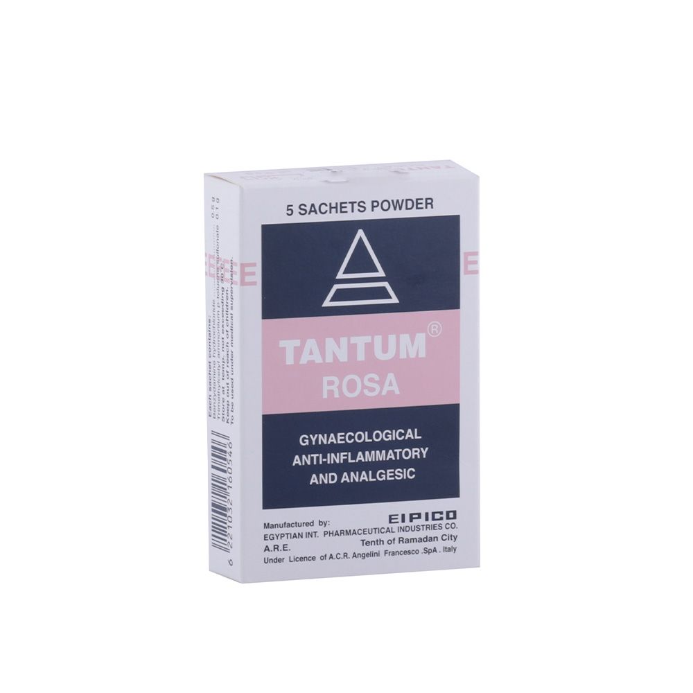 Tantum Rosa Powder Sachet is a non-steroidal anti-inflammatory drug applied topically. Once applied, it selectively binds to the inflammed vaginal mucosa blocking exudation, thus resolving problem of vaginal discharge as well as inhibiting the mediators responsible for inflammation through its decongestant effect. Due to these two simultaneous actions, in addition to its local anaesthetic effect, Tantum Rosa provides relief of pain and associated symptoms of inflammation. It has no systematic adverse effects being selectively bound to inflammed tissues. Tantum Rosa is therefore the safe and effective method which assists in the resolution of vaginal inflammation together with its troublesome symptomatology.