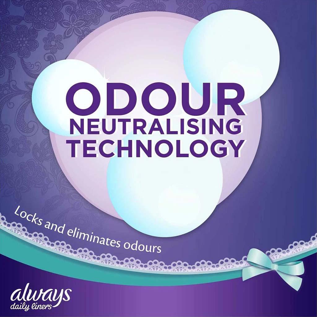Always Daily Liners Comfort Protect With Fresh Scent is designed for incredible protection and comfort no matter what day of the month. Always Daily Liners are designed to give you reliable protection against daily discharge, period leaks, and light incontinence. It comes with a comfort design, that offers a great combination of comfort and protection, so you can rely on them every day without worrying about feeling them. Always Panty Liners are designed to be comfortable, so you will barely feel them while wearing. These liners are ideal for vaginal discharge or as added protection for irregular periods. Odour neutralizing technology to keep you feeling fresh and confident throughout the day, also absorbent core provides trusted reliability throughout the day. They have been dermatologically tested, for protection you can feel about. Plus, the pantiliners absorb leaks in seconds deep within the LeakGuard Core to keep you feeling clean and comfortable.