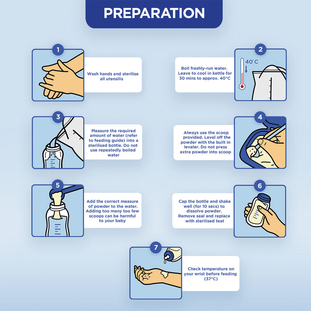 - IMPORANT: Breastfeeding is best for babies and a healthy diet / maternal nutrition is important when breastfeeding. A decision not to Breastfeed can be difficult to reverse. Infant formula is suitable from birth when babies are not breastfed. It is recommended that all formula milks be used on the advice of a doctor. All preparation and feeding instructions should be followed carefully as inappropriate preparation could lead to health hazards.