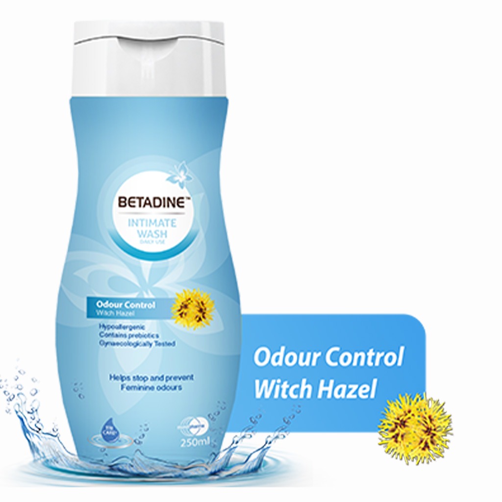 Betadine Daily Use Feminine Intimate Wash, Odour Control Witch Hazel is exclusively designed to help relieves undesirable feminine odours whilst protecting sensitive intimate skin. Its unique pH balanced TriCare ™ formulation with prebiotics and natural Witch Hazel extracts provides advanced deodorizing effect to keep unwanted odours at bay. An imbalance in healthy intimate flora can result in a variety of symptoms, such as itching, odour and irritation. Therefore it is important to maintain hygiene in your intimate zone. However, perfumed soap can disrupt the natural pH levels in the intimate area. Formulated with natural ingredients, Betadine Daily Use Feminine Intimate Wash contains a unique Tri-care formulation with prebiotics that helps stimulate the growth and dominance of beneficial bacteria and prevents harmful organisms from growing. Naturally extracted Witch Hazel from the Hamamelis virginiana plant helps prevent odours and supports effective deodorising. Thus, Betadine Intimate Cleanser range allows you to stay fresh and free of discomfort daily rather than heavily fragranced soaps and shower gels, providing everyday protection of the intimate feminine area.